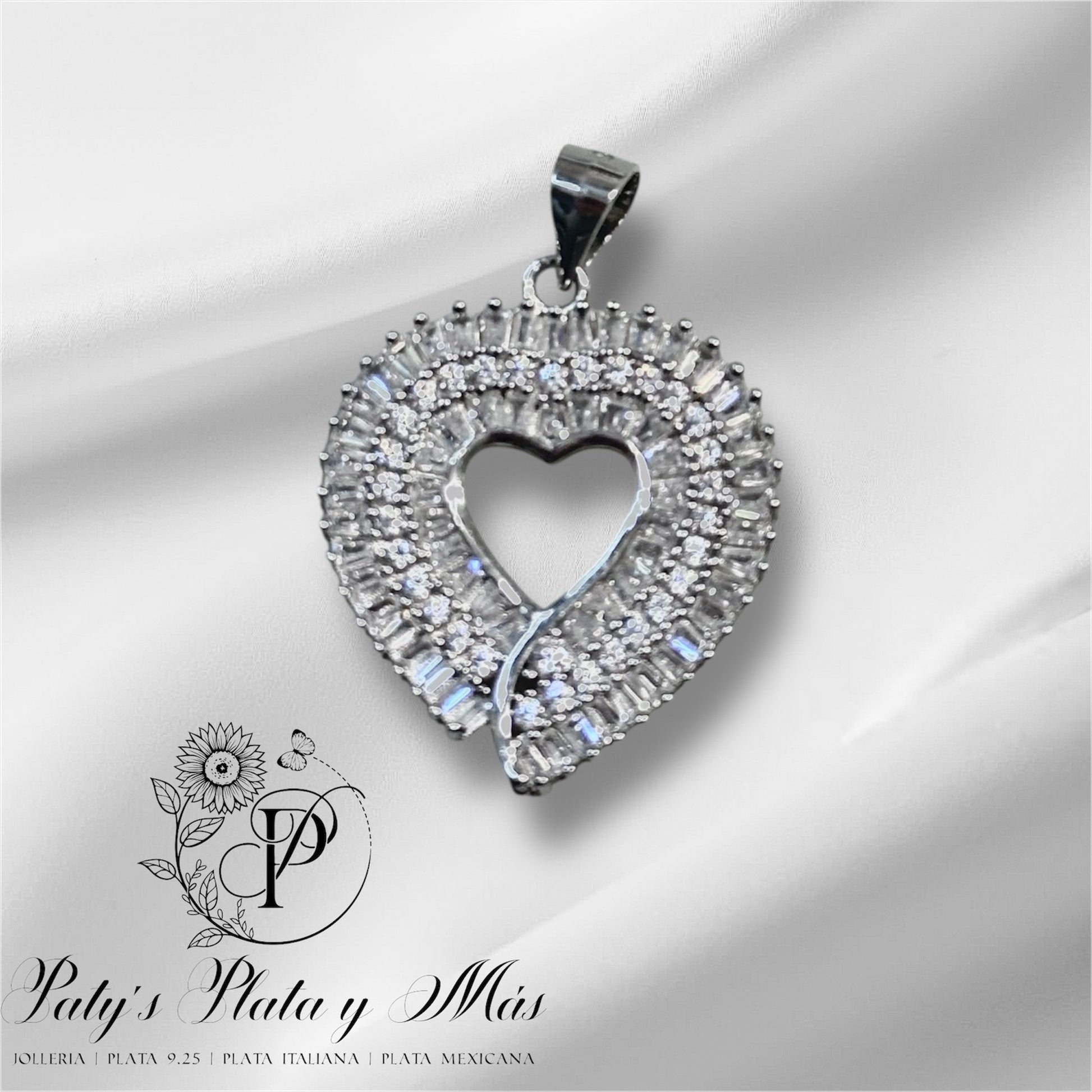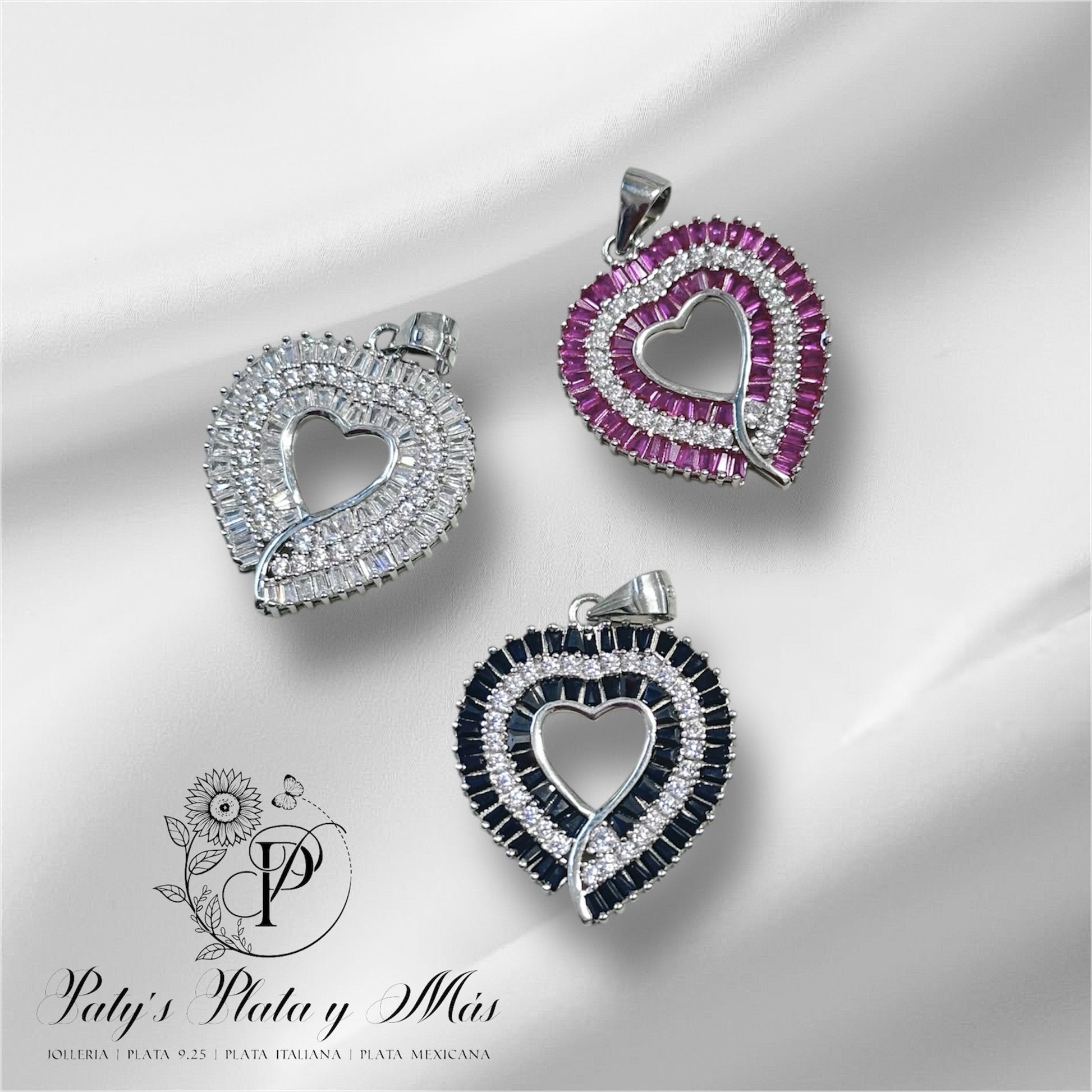 Este dije en forma de corazón combina la elegancia de circonias y baguettes de colores cristal, oscuro y rosa, creando un diseño sofisticado y vibrante. Su baño de rodio ofrece una protección duradera contra el desgaste, mientras que la capa de oro blanco realza su brillo y resistencia. Perfecto para quienes buscan una pieza delicada y con un acabado profesional que resalta en cualquier ocasión.